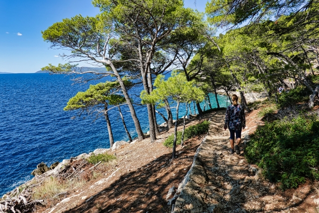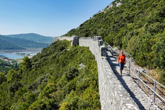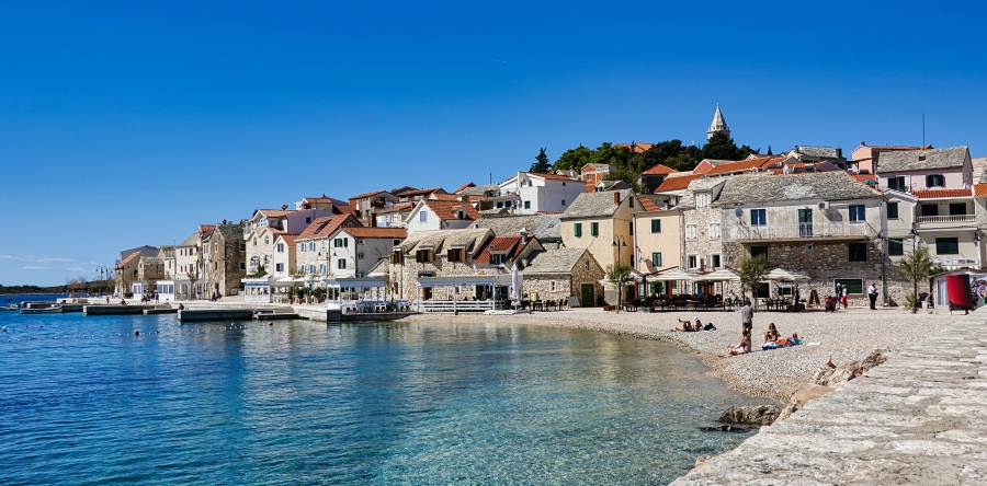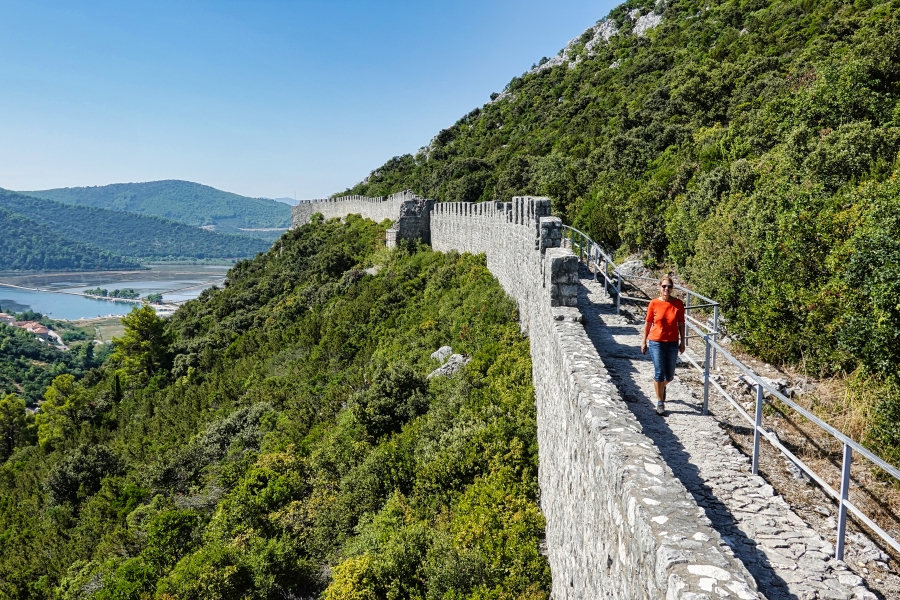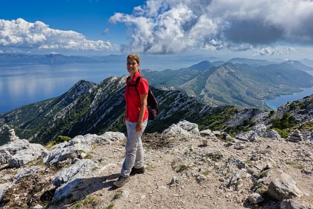 Bei der Weiterfahrt begeistert die Küstenlinie und das klare türkisfarbene Wasser. Die hohen Karstberge im Landesinneren (das in Dalmatien ja nicht so breit ist) geben den malerischen Hintergrund vor dieser Kulisse, unzählige Inseln liegen im Meer. Ja, Kroation ist wahrlich gesegnet mit seinen Naturschönheiten. Darüber hinaus ist Kroatien ein Wanderparadies. Häufig schnüren wir die Wanderschuhe und genießen auch von oben die wunderbare Aussicht und beeindruckende Bergpanoramen im kargen Gestein.