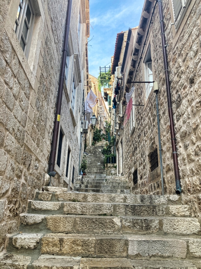 Wenngleich Dubrovnik aus allen hervorsticht. Nicht umsonst zählt sie zum UNESCO Weltkulturerbe. Der markante Festungswall ist bereits von Weitem zu erkennen, als wir uns per Boot vom Campingplatz herüberschippern lassen. Wir haben extra den Nachmittag gewählt, so dass sich die Besuchermassen in Grenzen halten. Der historische Ortskern ist überraschend groß und die Hauptstraße sehr beeindruckend. Nur den Gang auf der Stadtmauer verkneifen wir uns, 70 Euro für uns beide ist uns einfach zu teuer.