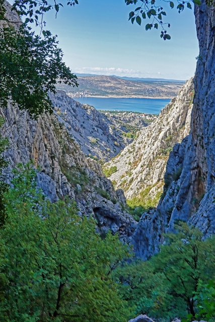 Die Gegend ist mal wieder atemberaubend, die Aussicht bis zum Meer malerisch. Doch ein Blick auf die Uhr bringt uns einige Sorgenfalten ins Gesicht. Durch die anstrengende Kletterei kommen wir kaum vom Fleck und wir haben noch viele Kilometer vor uns. Endlich, nach einigen Stunden, sind wir durch die erste Schlucht hinauf geklettert und queren die Berge zur nächsten Schlucht, durch die es wieder zurück geht. Hier befinden wir uns in der Valika Paklenica, der großen Schlucht und dem Hauptweg des Nationalparks. Dem Himmel sei Dank, der Abstieg ist bei weitem nicht mehr so herausfordernd wie der Aufstieg, so dass wir besser vorankommen. Als wir endlich das Tal der Toten erreichen, fühle ich mich diesen trotzdem sehr nahe und überlege kurzfristig, mich einfach daneben zu legen. Glücklicherweise kann mich Klaus noch gerade davon abhalten, so dass wir nach 28,25 Kilometer und 8:39 Stunden völlig fertig den Campingplatz erreichen.