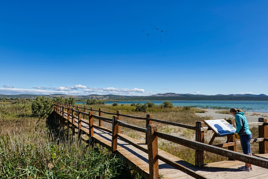 Unterwegs am Vranskoje Jezero, einem Naturpark mit See für Vogelbeobachtung ...