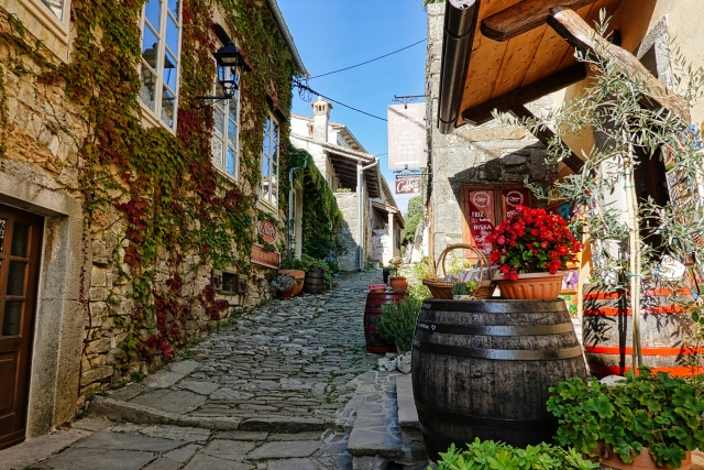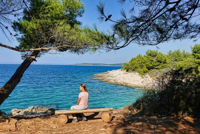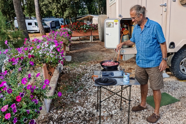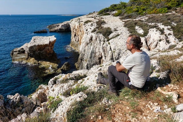 Wir nehmen auch das letzte Tempo aus unserer Reise, genießen das tolle Wetter und bleiben an fast jedem Platz hängen. So entspannt und langsam rollen wir durch Istrien und zögern somit das Ende unserer fantastischen Abenteuertour Balkan hinaus. Auch hier hat inzwischen der Herbst Einzug gehalten, abends und nachts wird es kühl, aber tagsüber lacht die Sonne vom Himmel. Allerdings ist das Meer wesentlich kälter geworden, ich kann mich nicht mehr überwinden, hineinzuspringen. Egal, wir waren ja oft genug im unvergleichlich klaren Wasser. Diese einzigartige Küste und dieses Wasser werden mich immer an Kroatien erinnern. Die Wanderschuhe werden noch ein paar Mal geschnürt, wir sind sogar auf den Spuren der Dinosaurier unterwegs, und bummeln ein letztes Mal durch weitere schnuckelige Orte - u. a. besuchen wir mit Hum das angeblich kleinste Dorf der Welt. Dann stehen wir auch schon am Leuchtturm in Savudrija, wo wir tatsächlich keinen Übernachtungsplatz auf dem Campingplatz mehr bekommen. Nun gut, dann war es das halt jetzt. Es ist noch früh am Tag und so verlassen wir Kroatien und rollen nach Slowenien.