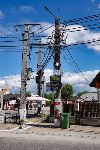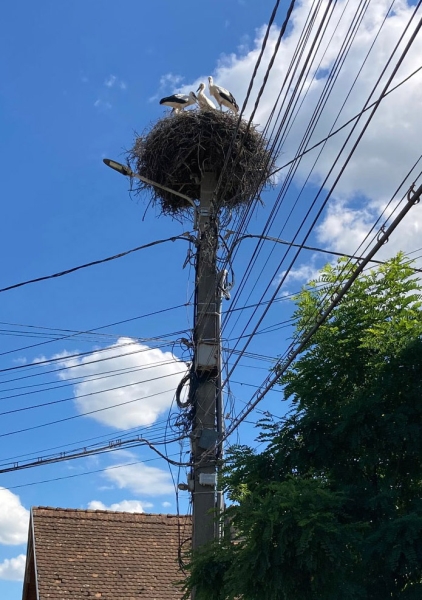 Wir sind noch keine Stunde in Rumänien und schon habe ich mich in dieses Land verliebt. Gleich hinter der Grenze traben die ersten Pferdekarren entlang des Weges, am Straßenrand sind Obst- und Gemüsestände zu sehen, die Stromleitungen laufen in einem scheinbar willkürlichen Gewirr an den einzelen Strommasten zusammen, auf deren Spitze die Störche in ihren Nestern auf den gerade geschlüpften Nachwuchs aufpassen. Viele Nebenstraßen, die von der gut asphaltierten Hauptstraße abzweigen, sind reine Schotterstraßen, die Bürgersteige schlängeln sich neben der Regenabflussrinne und dem staubigen Seitenstreifen über Stock und Stein entlang. Wir wähnen uns in Mexiko. Der Satz "Schau mal, wie in Mexiko!" fällt täglich mehrfach. Als dann auch noch bemalte Reifen mit dem Wort "Vulcanizare" auftauchen und man sogar eine "cabana" mieten kann, ist es um mich geschehen. Das Land zieht mich voll in seinen Bann.