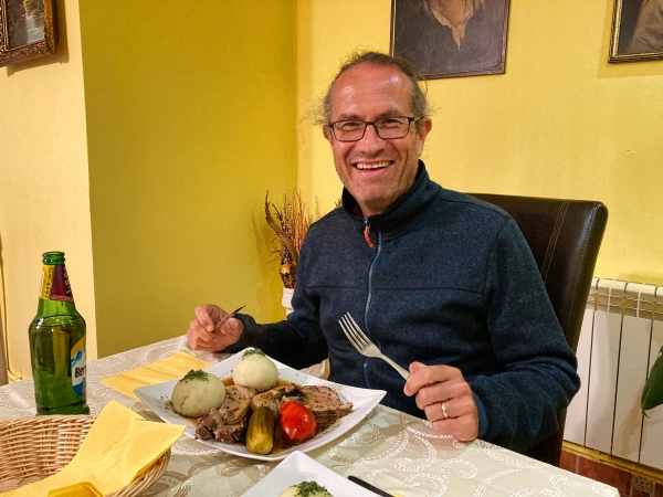 Im Norden des Landes gibt es unendlich viele Kirchen und Klöster. Jedes noch so kleine Dorf hat häufig mehrere Kirchen und es werden sogar vielerorts neue gebaut. Wir staunen nicht schlecht. Wir finden charmante Campingplätze, liebevoll gestaltet und bei einigen können wir auch sehr gut und vor allem preiswert essen. Beim Camping "Zur deutschen Eiche" gibt es frisch zubereiteten Schweinebraten mit Semmelknödel. Bei einer Forellenzucht essen wir jeder einen sehr leckeren fangfrischen Fisch mit jeweils zwei Bier und zahlen zusammen 20 Euro.