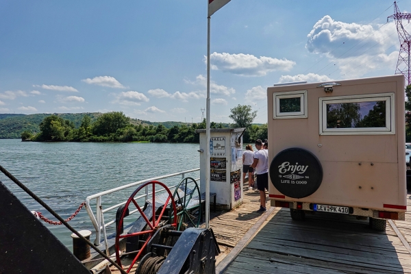 Direkt nach der Grenze zu Serbien geht es per Fähre über die Donau