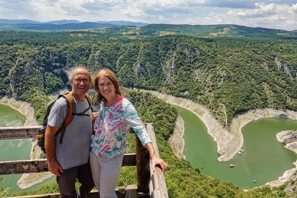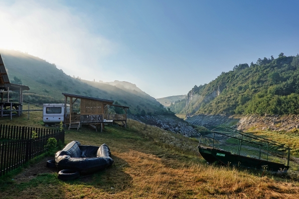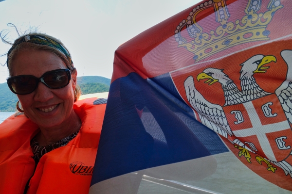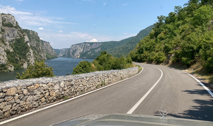 Wir beginnen unsere Abenteuertour durch Serbien genau so, wie wir sie in Rumänien beendet haben - an der Donau. Erst geht es mit der Fähre kurz nach Grenzübergang über selbige, dann folgen wir der Straße entlang des Grenzflusses. Schon wird es Zeit, einen Campingplatz aufzusuchen, es war ein langer Tag. Die überaus nette Besitzerin Milena begrüßt uns herzlich mit einem Krug frischer Limonade aus Holunderblüten - ein gelungener Start in das neue Reiseland. Sie empfiehlt uns ihre Freundin Natasha für unsere geplante Bootstour auf der Donau durch das Eiserne Tor. Es ist ein Durchbruchstal, wo sich die Donau imposant durch die schroffen steilen Felswände gegraben hat.