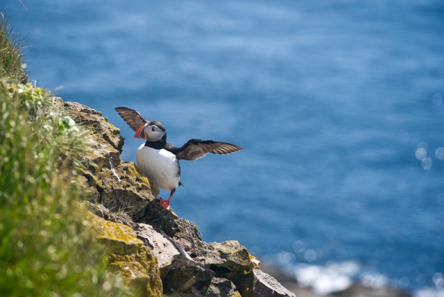 Ganz aufgeregt rollen wir nach zwei Tagen auf hoher See von der Fähre und "betreten" Island. Vom Hafen überqueren wir den ersten Pass, wo wir auf Schneefelder und teilweise zugefrorene Seen treffen - und das im Juli! Iceland - der englische Name bringt es auf den Punkt: Ein Land aus Eis und Schnee! Und gleich am ersten Tag steht das erste absolute Highlight auf dem Progamm, in Hafnarhólmi hüpfen die niedlichen Papageientaucher um uns herum und lassen sich von den Touristen so gar nicht stören. Wie putzig!!!!