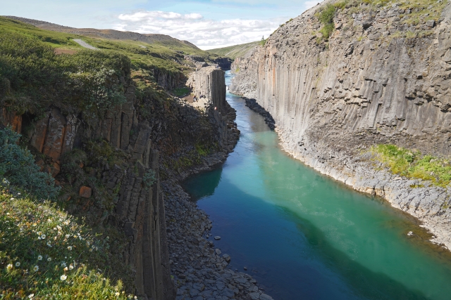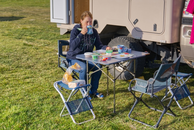 Die nächsten Tage werden von weiteren Höhepunkten geprägt, der eindrucksvolle Basalt-Canyou und der riesige Wasserfall Dettifoss begeistern uns ebenso wie das sonnige Wetter! An unserem ersten Morgen frühstücken wir sogar draußen, das verspricht doch ein schöner Sommer hier zu werden! In den nächsten Tag weht uns bereits ein kräftiger Wind um die Ohren. Ok, das mit dem Sommer ist hier wohl nicht so wörtlich zu nehmen! Im Gebiet um den Mývatn blubbert und qualmt es aus allen möglichen Löchern. Die Vulkanaktivität ist überall zu sehen. Schon hat uns das Land in seinen Bann gezogen!