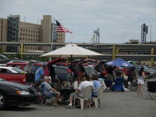 ... und einige bauen ihren Grill gleich auf dem Parkplatz auf,
