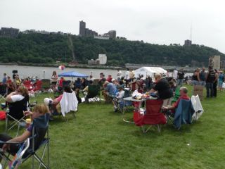 Man macht es sich gemütlich für den besten Platz zum Feuerwerk