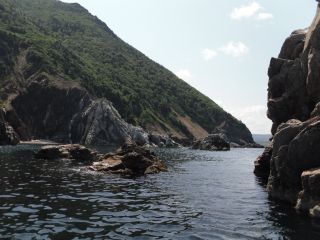![]() Später sehen wir Grotten, hin und wieder tauchen Robben auf ... |