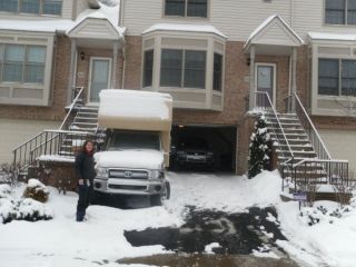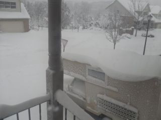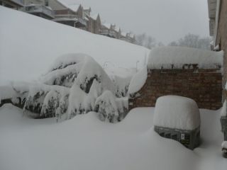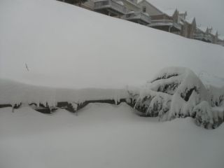 Und dann! Über Nacht zieht ein Schneesturm über die Ostküste und bringt mehr als 60 cm Neuschnee. Der Blick auf unsere Terasse ist identisch mit dem Bild Nr. 3 auf dieser Seite.