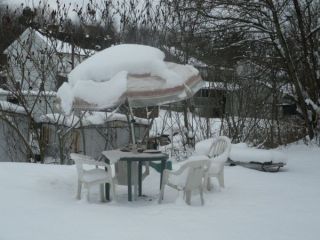 Januar: 20 cm Neuschnee bedecken unsere Terasse ...