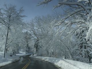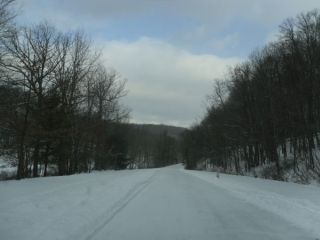 Verschneite Straßen - aber nur im State Park. Ansonsten werden in den USA im Gegensatz zu Leverkusen die Strassen vorbildlich innerhalb von Stunden geräumt.