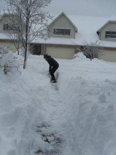 Unsere Nachbarn haben Mitleid und leihen uns ihre Schneeschaufel.