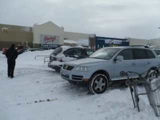 ... und den Expedi. Schneeräumen ist bei der Höhe eigentlich noch nicht angesagt. Der Schneepflug versucht es trotzdem und fährt uns den linken Scheinwerfer und Kotflügel kaputt. Der Tag bleibt in Erinnerung und wird uns noch viel Ärger und Lauferei bereiten. Es ist der 9. Januar 2010.