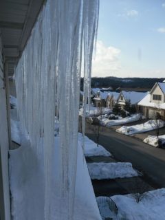 Eiszapfen vor unserem Schlaf- und Badezimmer.