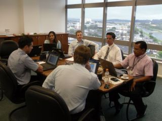 Meine Aufgabe: Ich habe gemeinsam mit meiner brasilianischen Kollegin Rouse ein Town Hall Meeting mit anschliessender Chat Session organisiert. Da der gesamte südamerikanische Kontinent dazu eingeladen ist, findet es virtuell statt. Nur die Führungsebene sitzt in Sao Paulo und präsentiert, die Mitarbeiter folgen dem Meeting über Videoleitungen von ihren Schreibtischen. Von Mexico bis Chile, von Peru bis Brasilien.