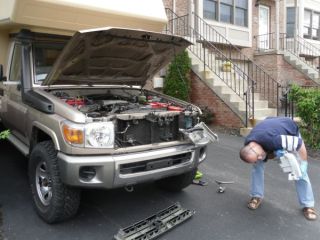 Klaus repariert unseren Expedi - nachdem er den Scheinwerfer von seinem letzten Deutschlandbesuch kurzerhand mitgebracht hat.