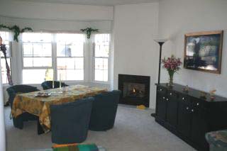 ... ins Wohnzimmer mit offenem (Gas)kamin