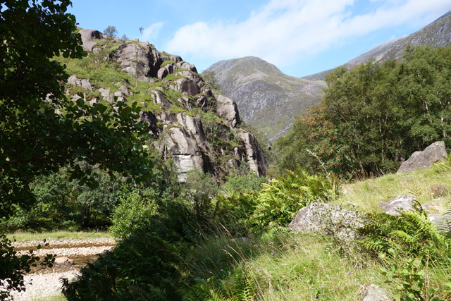 Glen Nevis (Parkplatz: N 56.76948° W 5.03643°). Mehr Infos hier. Das beliebte Wandergebiet gliedert sich in zwei größere Abschnitte, die durch eine enge Schlucht getrennt sind (siehe Wanderung 18).