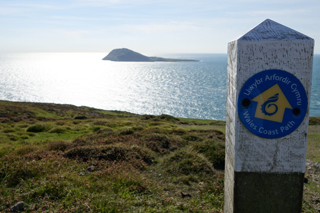 Zum ersten Mal geht es auf den Wales Coast Path, der sich als Fernwanderweg entlang der kompletten walisischen Küste zieht. An klaren Tagen reicht der Blick von hier bis hinüber zu den Wicklow Hills in Irland und zur Küste von Pembrokeshire.