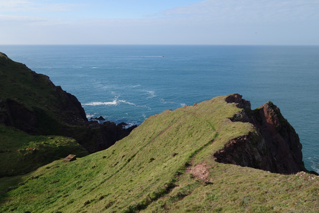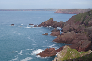 Auf dem Pembrokeshire Costal National Trail um die Dale Peninusula. Kurioser Startpunkt der Wanderung ist die Landebahn eines ehemaligen Militärflughafens. Danach führt der Weg entspannt und doch spektakulär oberhalb der Steilklippen am Meer entlang. Faszinierend ist das Cobbler's Hole direkt neben dem Leuchtturm, das einen interessanten Querschnitt in die übereinander geschobenen Gesteinsschichten der Klippen darstellt.