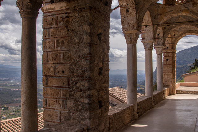 Bevor es ins Landesinnere des Peloponnes geht, führt ein Abstecher zum Schiffswrack eines 1981 am Strand von Valtaki havarierten Frachters. Kurz darauf geht es nach Norden, immer entlang des Taygetos Gebirges und vorbei am höchsten Gipfel des Peloponnes, dem 2.407 Meter hohen Profitis Ilias. Sparta wird vorerst noch rechts liegengelassen, denn das Ziel des Tages ist die Ruinenstadt Mystras.
