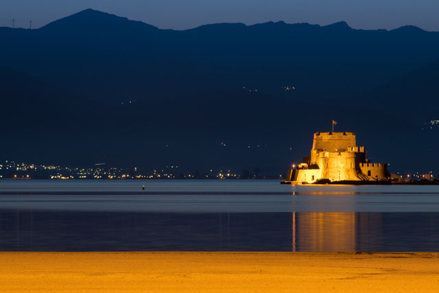 Entlang der Küste von Nafplio hinauf zur Festung Palamidi
