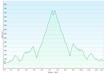 12,8 km, ca. 3:00 h, 431 m Anstieg, Hin- und Rückweg