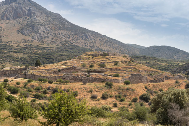 Dieser kurze Spazierweg führt durch landwirtschaftlich geprägte Gegend zur Festungsanlage Mykene. Die Stille wird schon früh von den vielen Tagesbesuchern durchbrochen, die Ameisen gleich durch die dicken Mauern der ehemaligen Hauptstadt der Region Argolis eilen. Ein Kapellchen liegt am Wegesrand und ein Stück dahinter bietet sich ein erster Gesamtüberblick über die Anlage, die zu einer der meistbesuchten Sehenswürdigkeiten des Landes zählt. Kurz darauf ist bereits der Haupteingang erreicht. Gut angelegte Wege führen durch die verschiedenen Bereiche der großen Ausgrabungsstätte, ein Museumsbesuch rundet die Besichtigung ab. Auf dem Rückweg - bereits außerhalb der Burganlage - wird ein weiteres Kuppelgrab passiert. Bitte beachten: Die Dauer und Länge des Spazierwegs beinhaltet nicht die Besichtigung der Anlage!