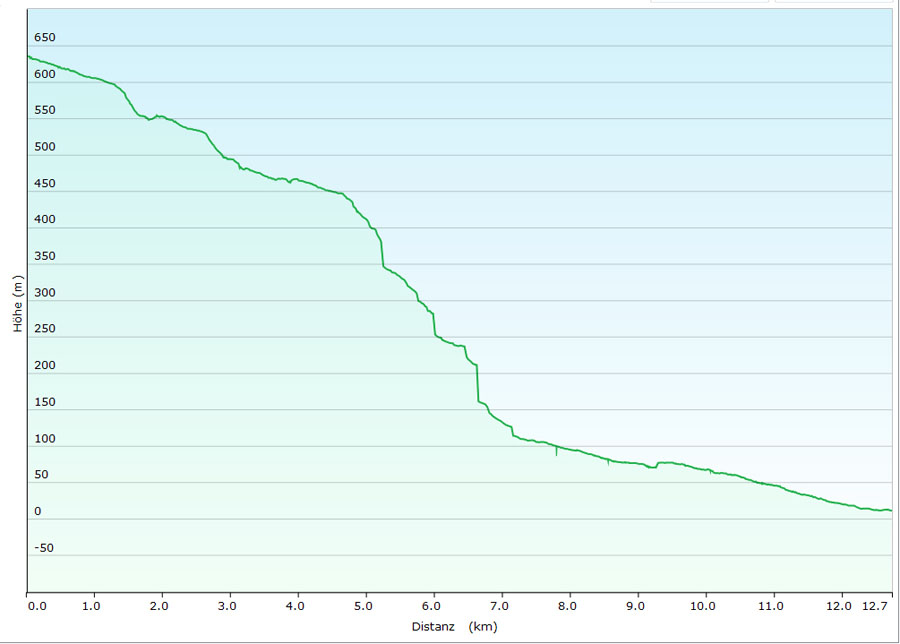 12,7 km, ca. 3:30 h, 631 m Abstieg, nur Rückweg